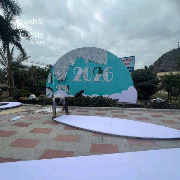 Quá trình lắp đặt bộ số 2026 với chất liệu Alumex in decal sắc nét